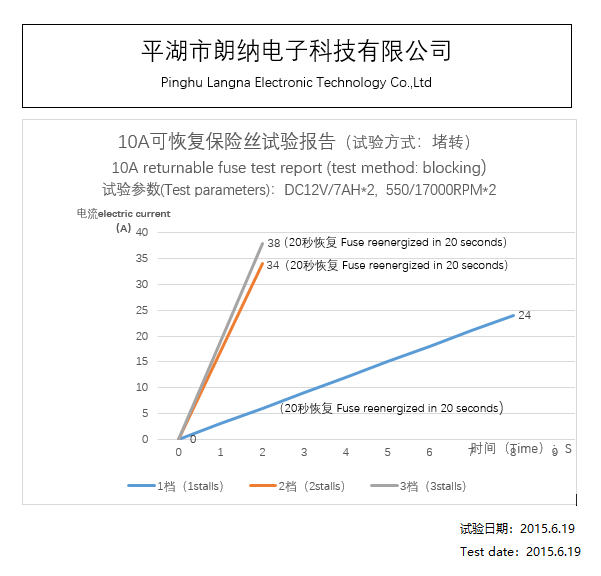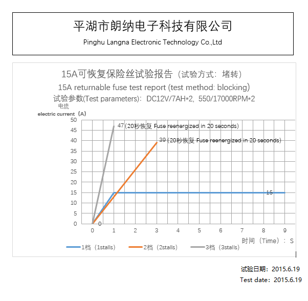 15A recoverable fuse, test report under stroller lock status